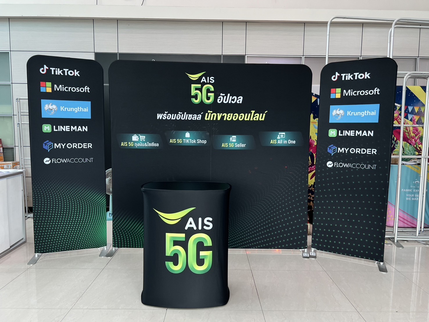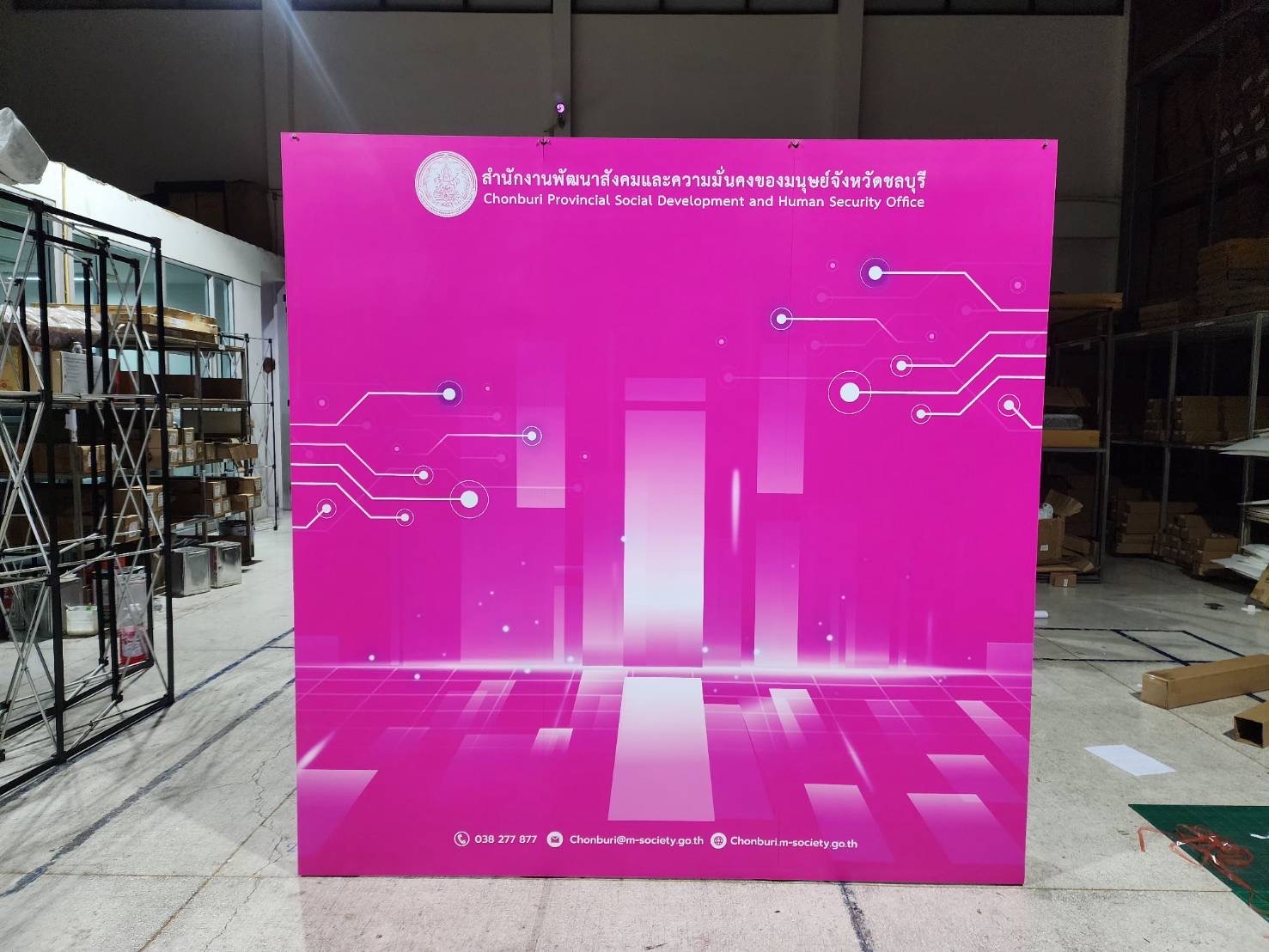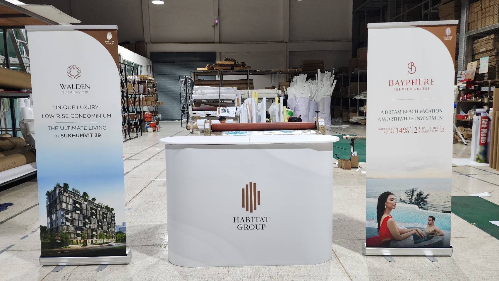 เรามีอุปกรณ์สินค้าสำหรับจัดอีเว้นท์ทั้ง Indoor Outdoor งานพิมพ์ผ้า และโครงออกบูธสำเร็จรูปกว่า 300 ทางเลือกพร้อมในโกดังสินค้า รวมถึงใช้เทคโนโลยีการพิมพ์ที่ทันสมัยเพื่องานพิมพ์ที่มีคุณภาพ สีสวย คมชัด