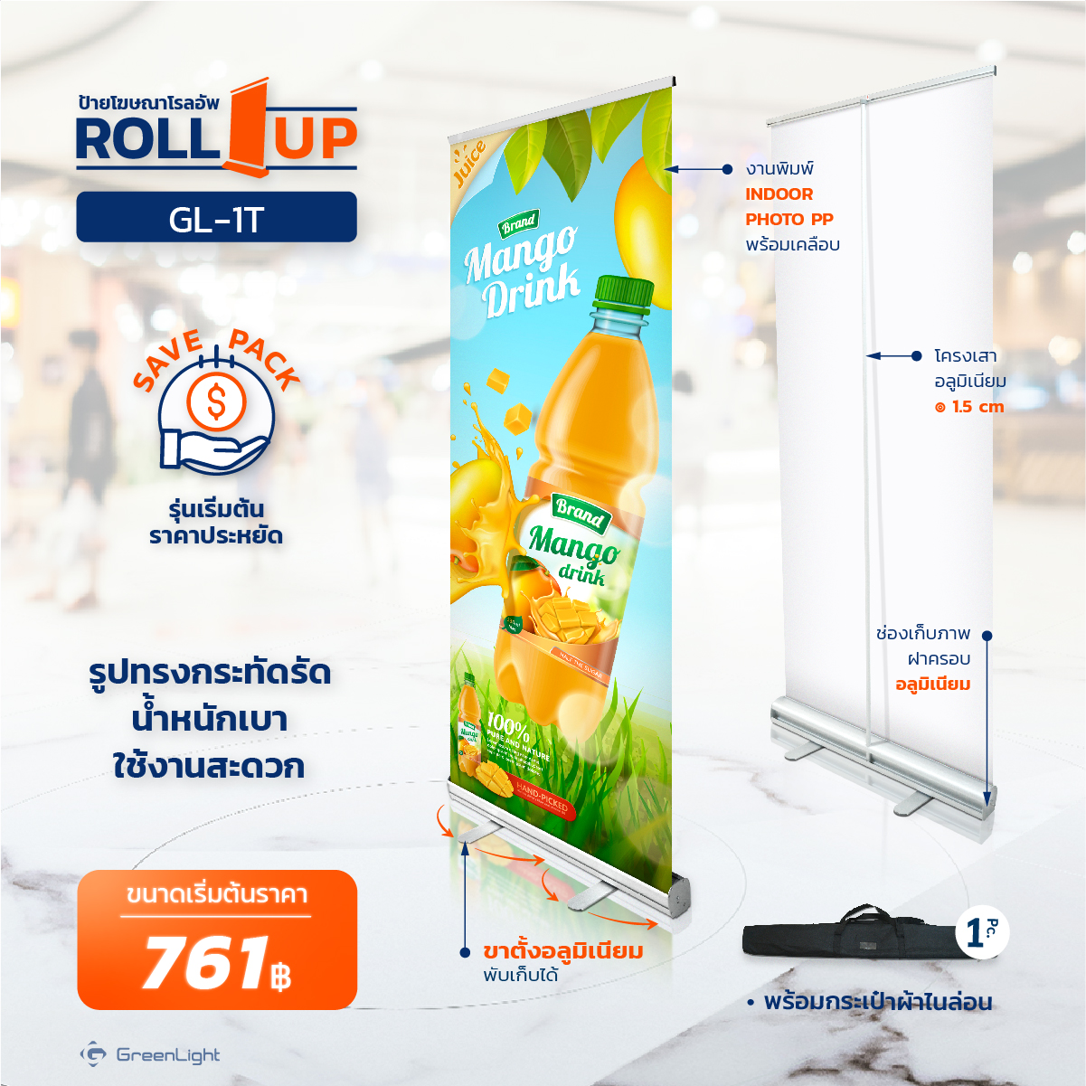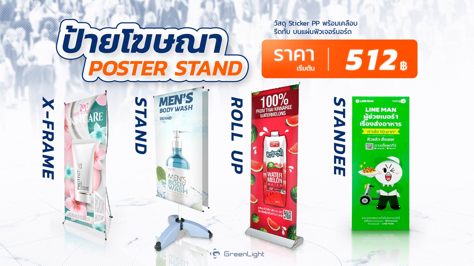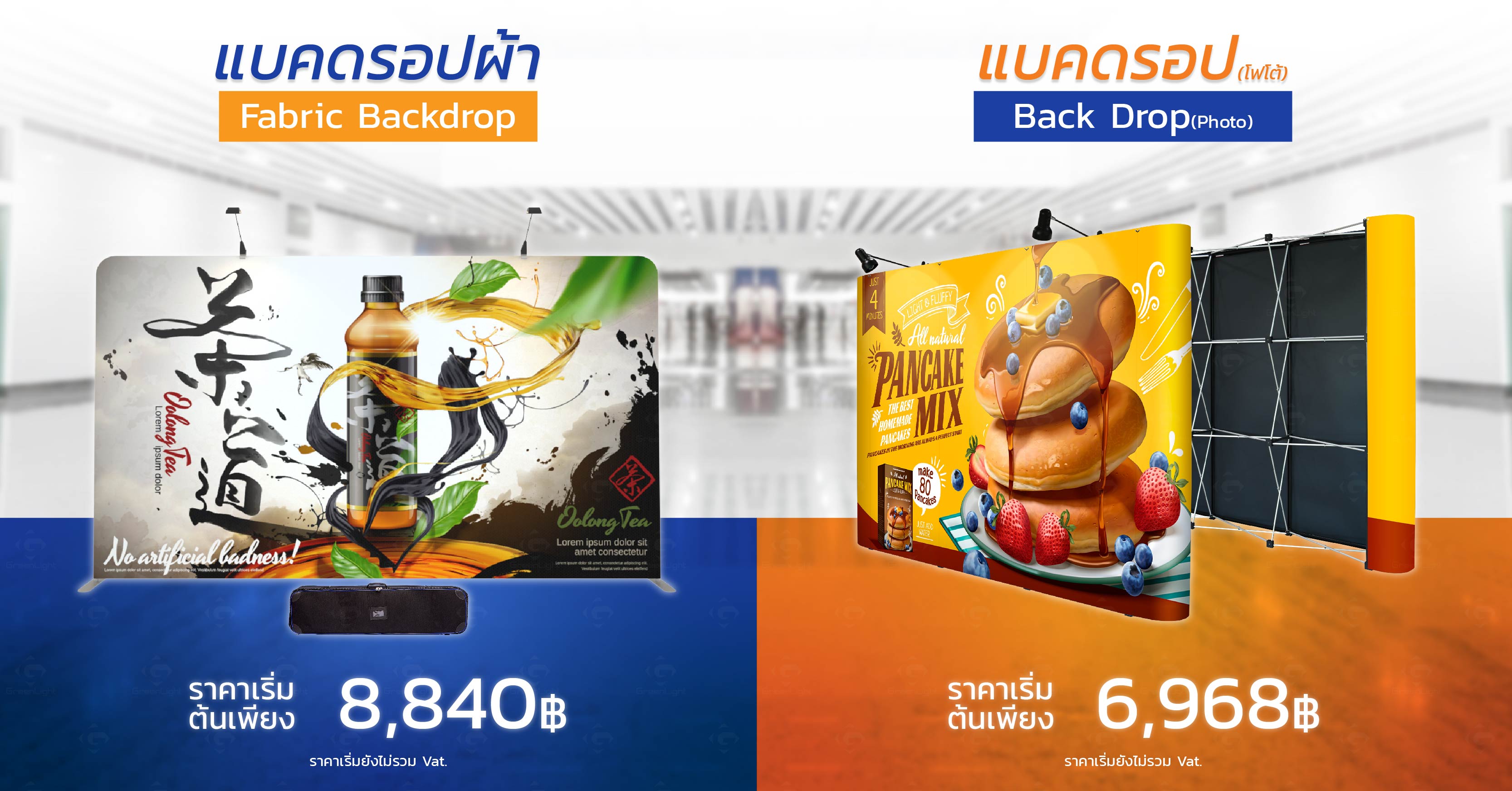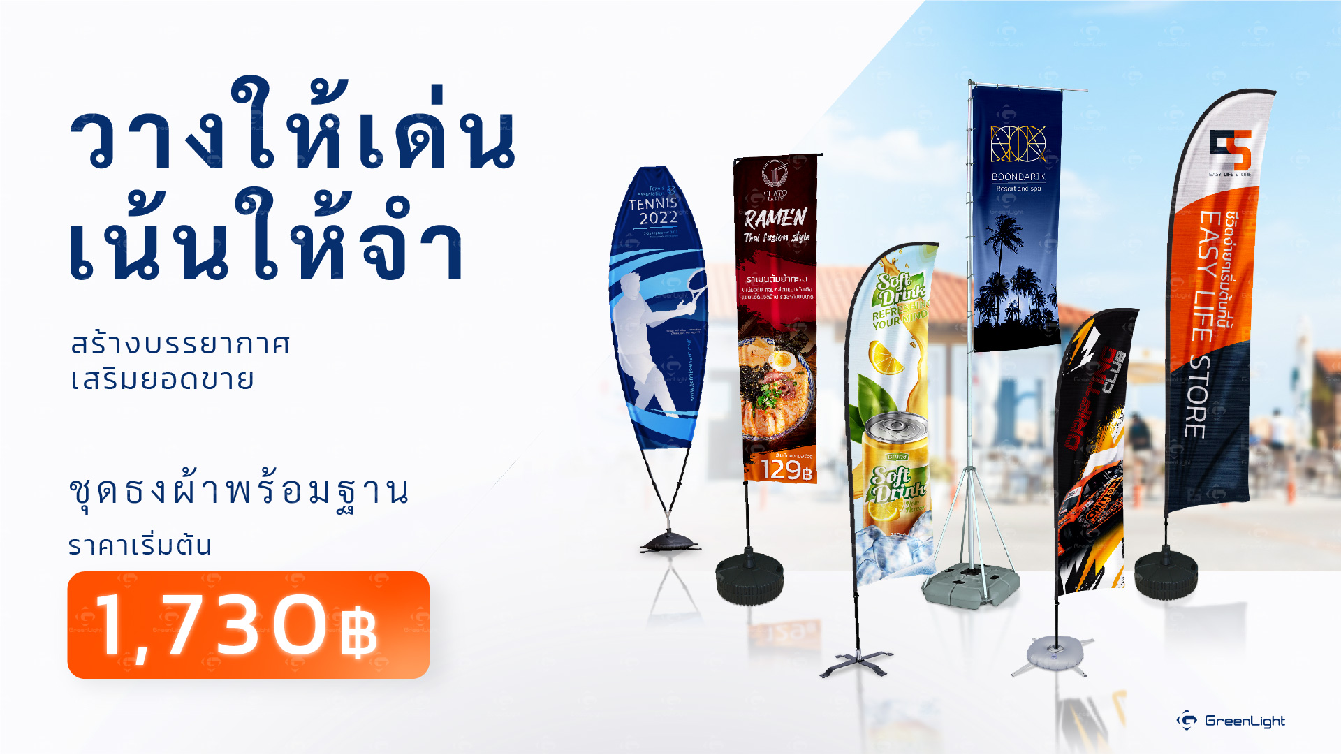 เรามีอุปกรณ์สินค้าสำหรับจัดอีเว้นท์ทั้ง Indoor Outdoor งานพิมพ์ผ้า และโครงออกบูธสำเร็จรูปกว่า 300 ทางเลือกพร้อมในโกดังสินค้า รวมถึงใช้เทคโนโลยีการพิมพ์ที่ทันสมัยเพื่องานพิมพ์ที่มีคุณภาพ สีสวย คมชัด