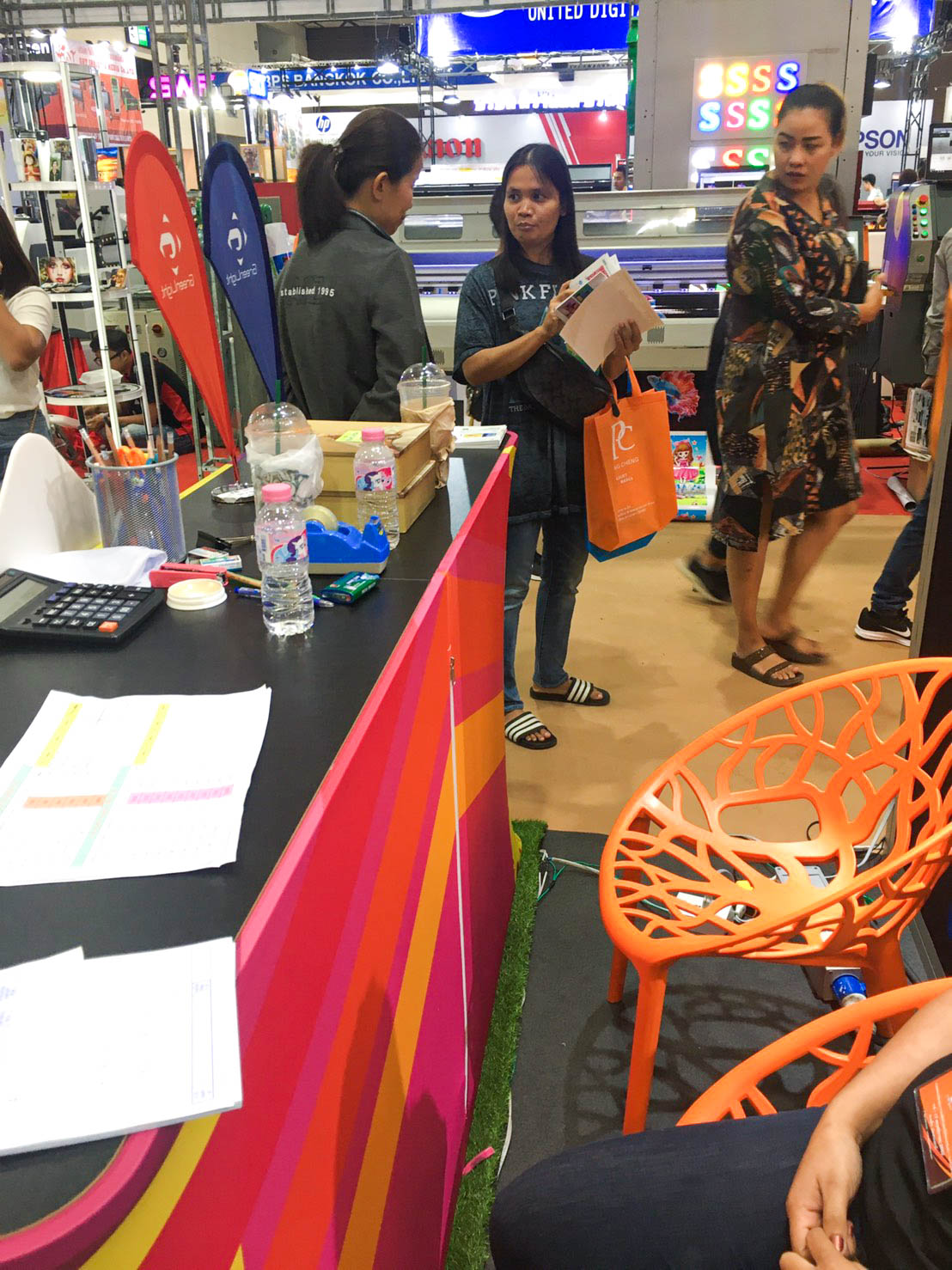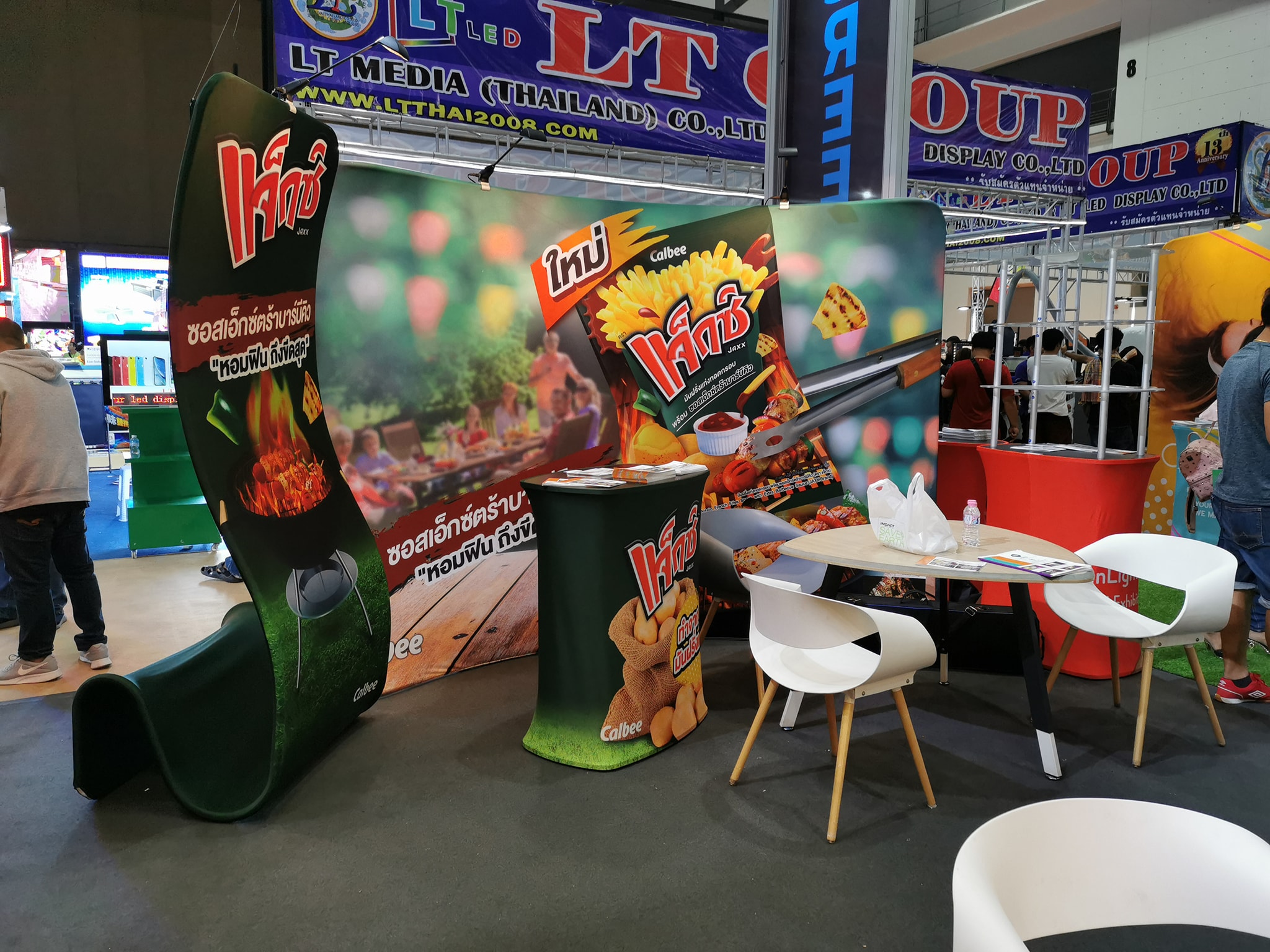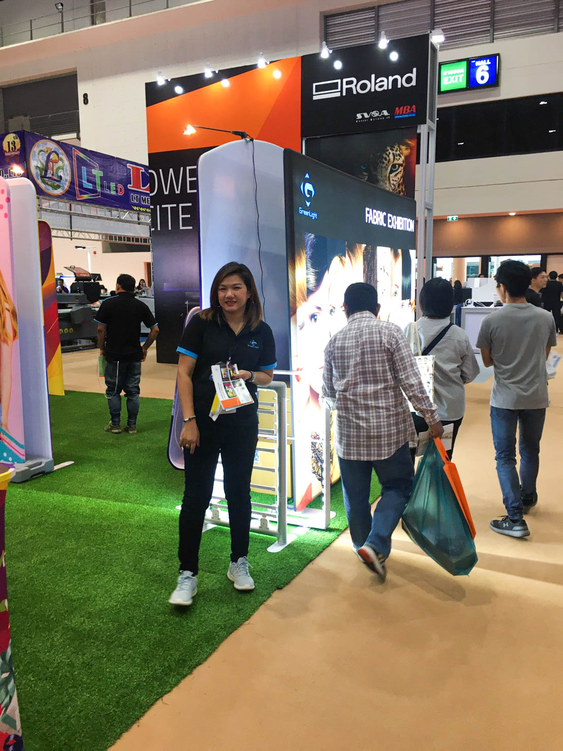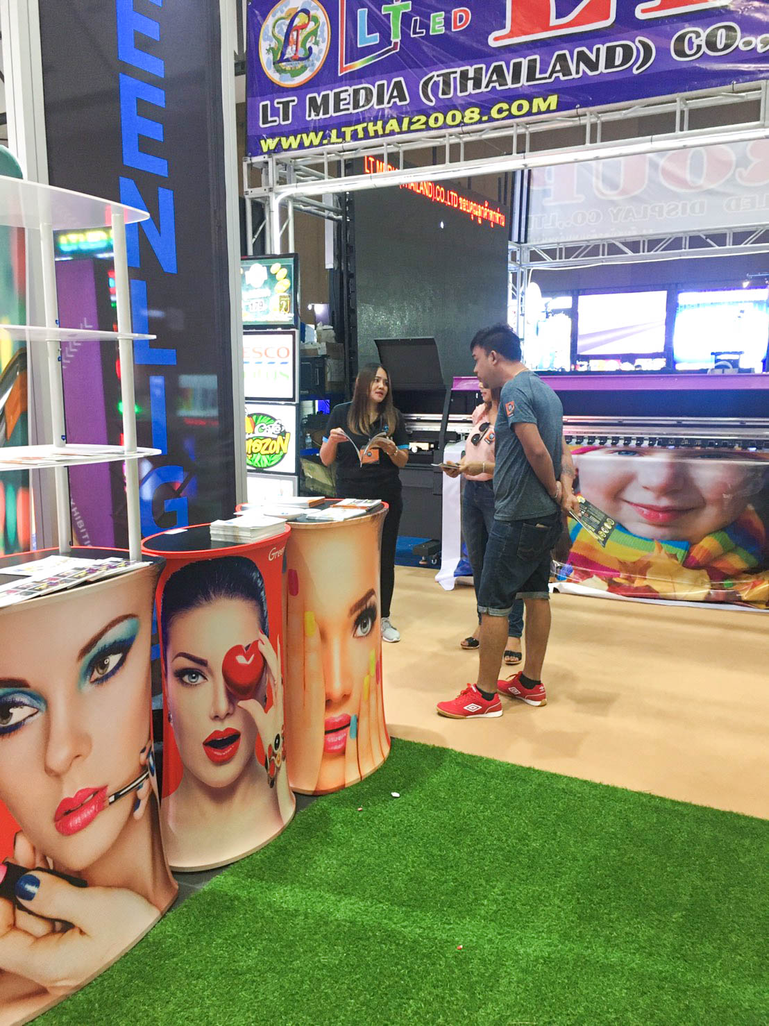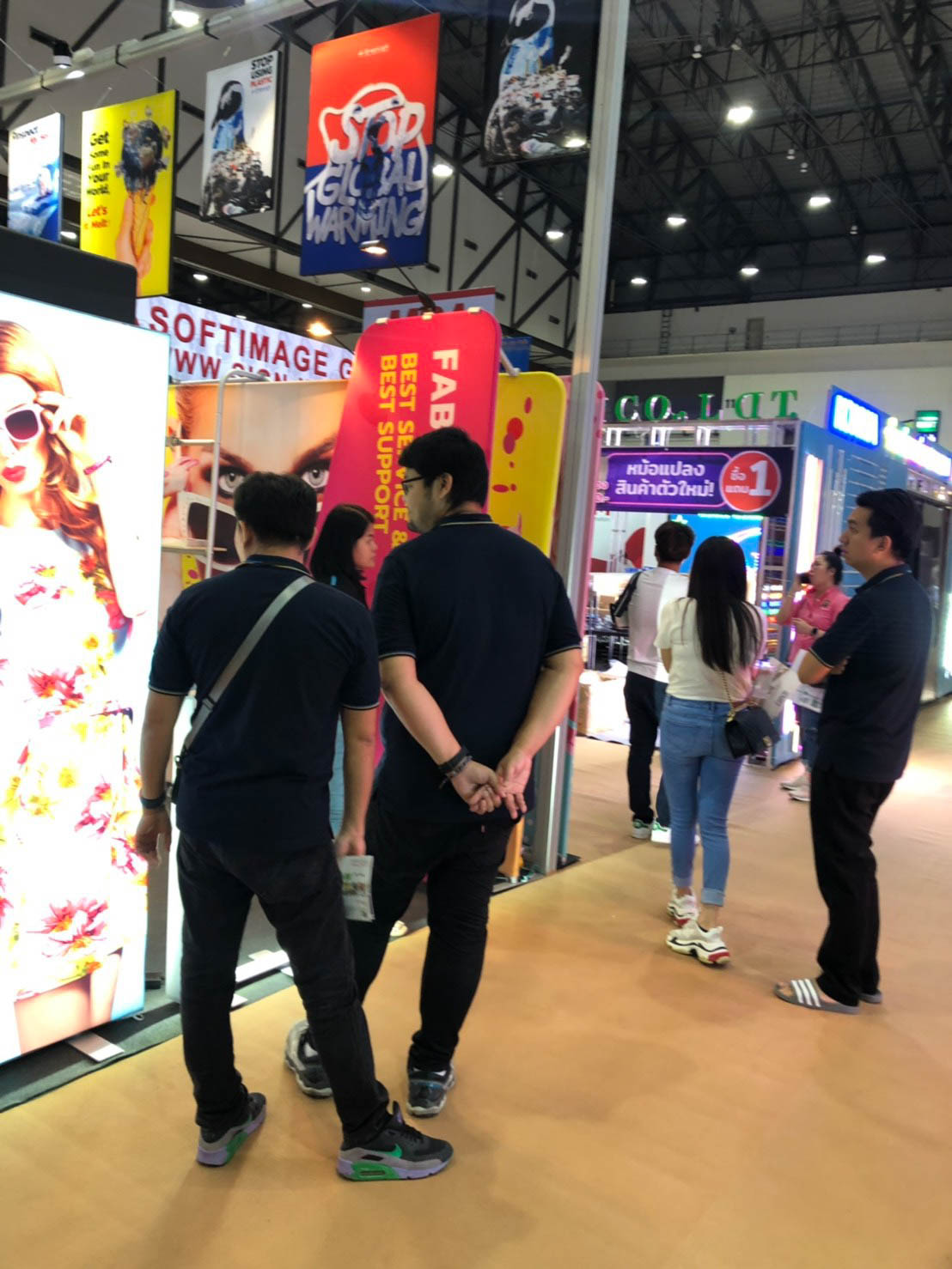ในปีนี้ทางเราเองได้นำสินค้าในหมวด Fabric Exhibition อุปกรณ์ออกบูธงานพิมพ์ผ้าไม่ว่าจะเป็น Fabric Backdrop, Fabric Counter, Fabric Screen หลายหลายรูปแบบนำมาจัดแสดง ในปีทางเราเน้นเป็นพิเศษไปให้ส่วนของ Fabric Booth ที่ถูกจัดมารวมเป็น Set เพื่อให้ลูกค้าได้เห็นถึงประโยชน์ที่หลากหลายไม่ว่าจะเป็นจุดเด่นในเรื่องจุดเด่นของงานผ้าที่สีสันสวยงาม โครงที่มีน้ำหนักเบา อุปกรณ์น้อยชิ้นใช้งานได้สะดวก ยังสามารถใช้งานร่วมกันได้ดี ให้รูปแบบการจัดวางที่แปลกใหม่เสริมสร้างความน่าสนใจได้มากทีเดียว แค่พูดคงยังไม่เห็นภาพมาดูกันเลยว่าเรามีอะไรบ้าง