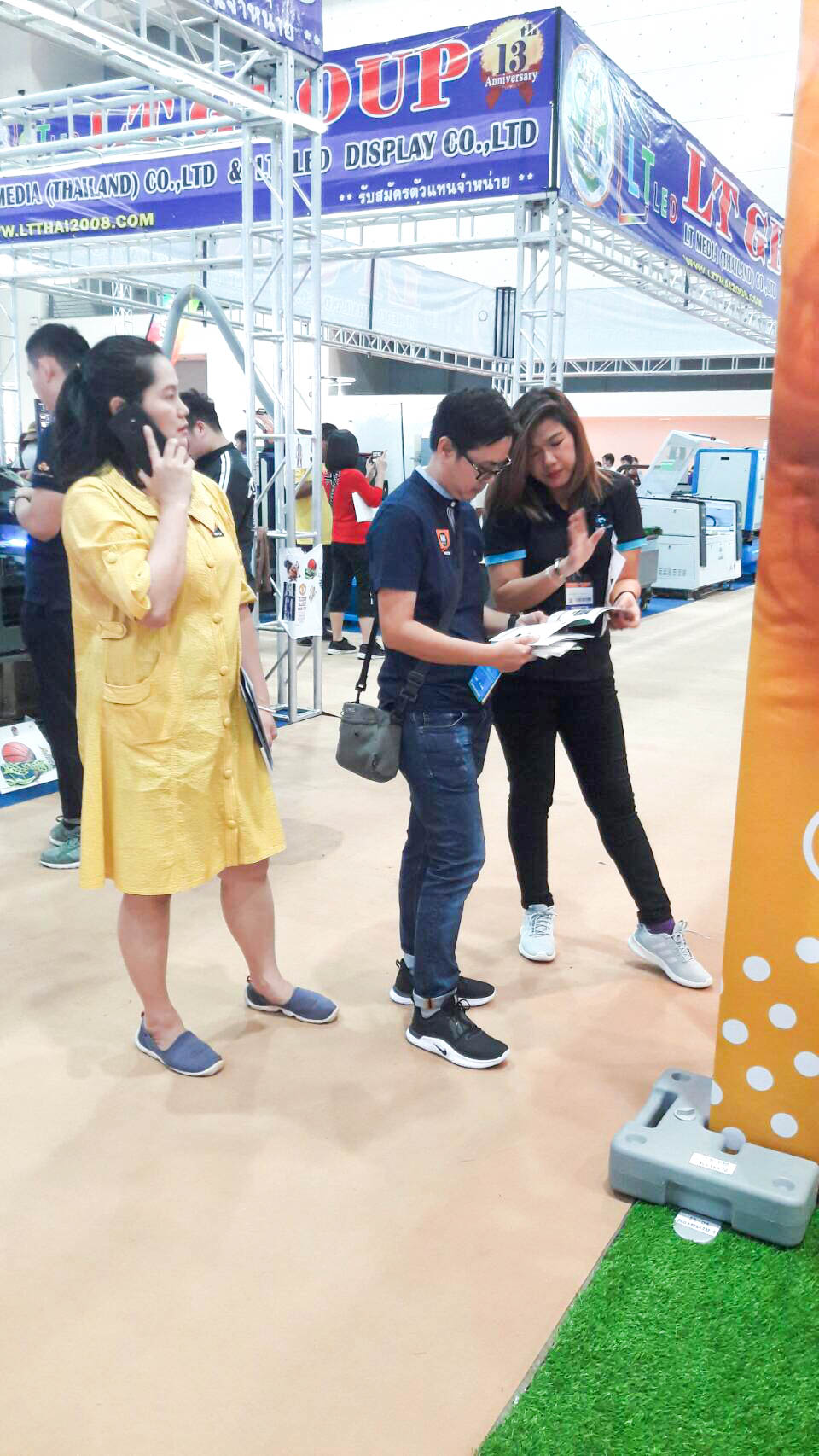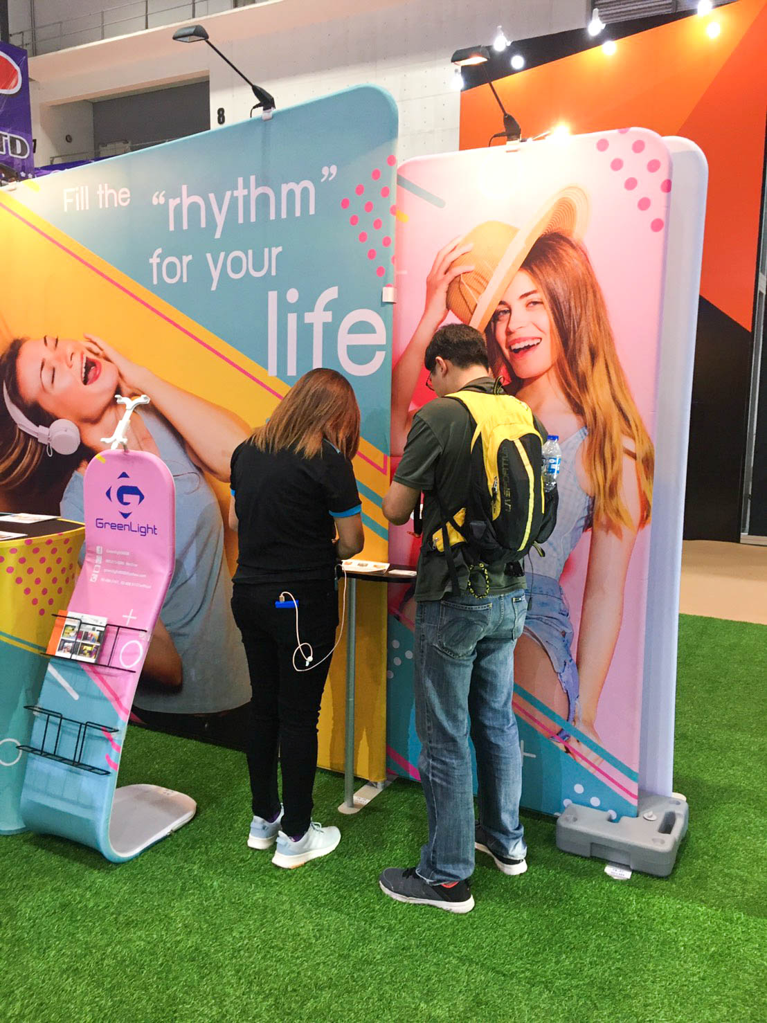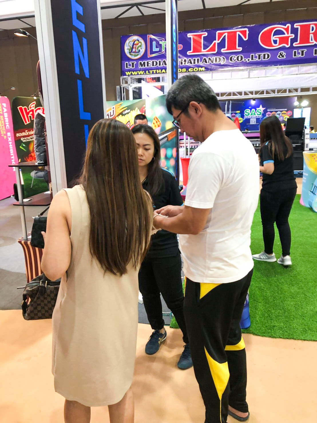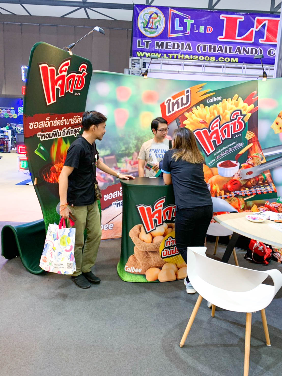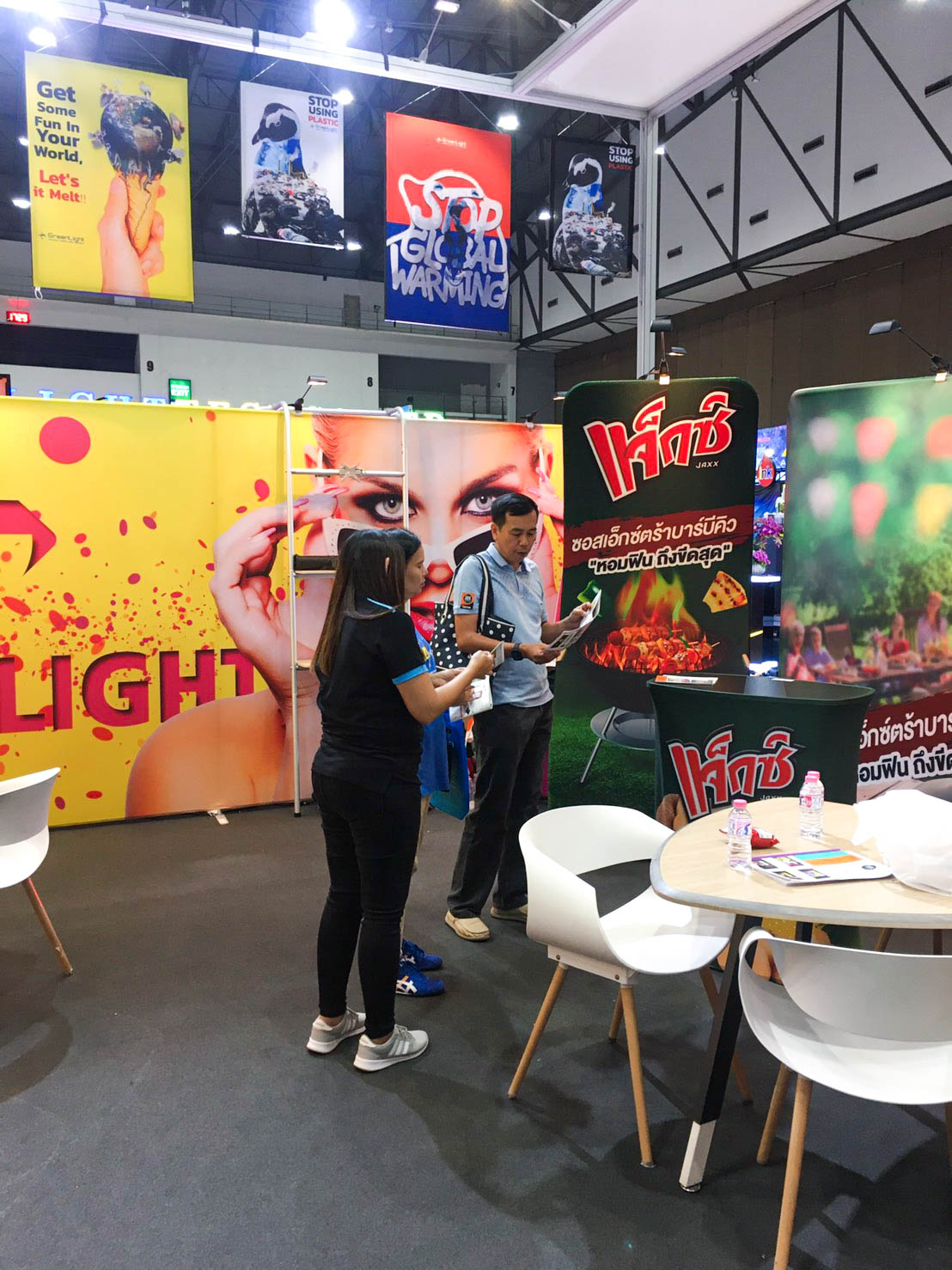ในปีนี้ทางเราเองได้นำสินค้าในหมวด Fabric Exhibition อุปกรณ์ออกบูธงานพิมพ์ผ้าไม่ว่าจะเป็น Fabric Backdrop, Fabric Counter, Fabric Screen หลายหลายรูปแบบนำมาจัดแสดง ในปีทางเราเน้นเป็นพิเศษไปให้ส่วนของ Fabric Booth ที่ถูกจัดมารวมเป็น Set เพื่อให้ลูกค้าได้เห็นถึงประโยชน์ที่หลากหลายไม่ว่าจะเป็นจุดเด่นในเรื่องจุดเด่นของงานผ้าที่สีสันสวยงาม โครงที่มีน้ำหนักเบา อุปกรณ์น้อยชิ้นใช้งานได้สะดวก ยังสามารถใช้งานร่วมกันได้ดี ให้รูปแบบการจัดวางที่แปลกใหม่เสริมสร้างความน่าสนใจได้มากทีเดียว แค่พูดคงยังไม่เห็นภาพมาดูกันเลยว่าเรามีอะไรบ้าง