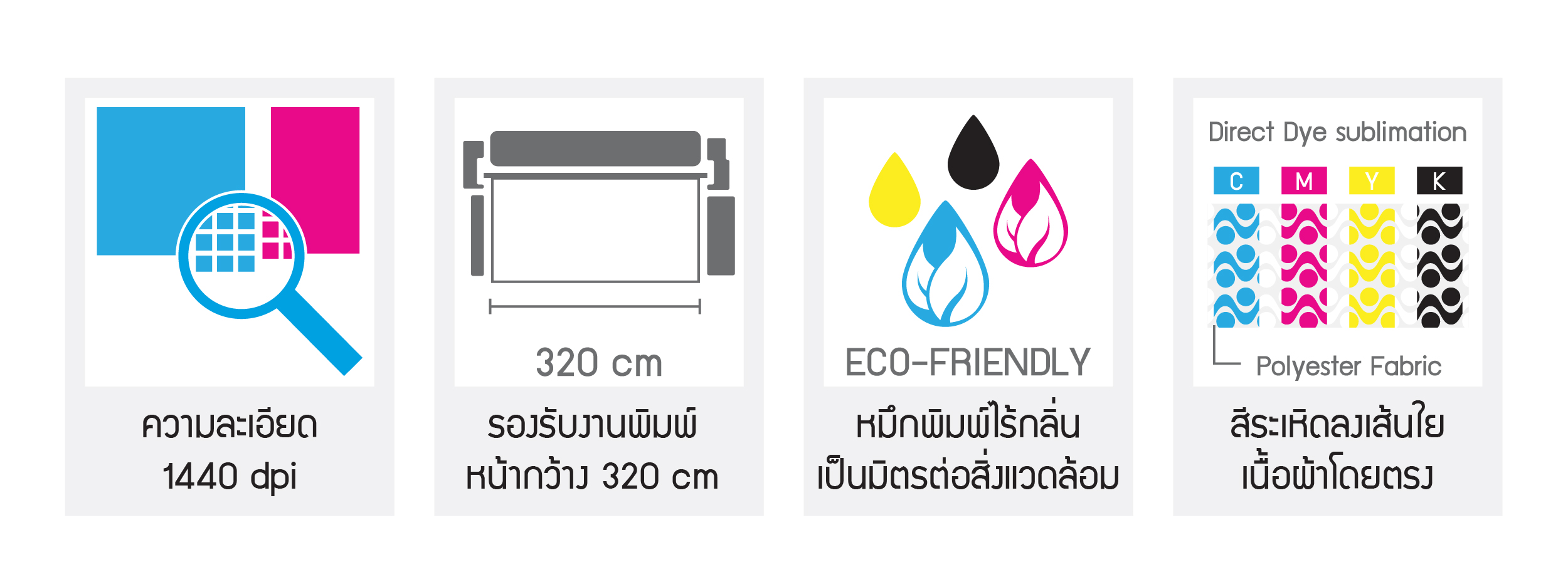 เม็ดสีฝังลึกแน่นไม่หลุดหรือลอกได้ง่ายและยังสามารถผลิตงานได้อย่างรวดเร็วและต่อเนื่อง