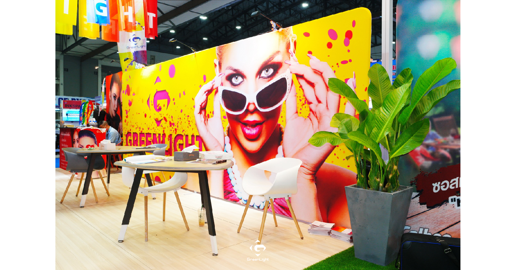 การออกแบบที่เหมาะสมกับงานอีเว้นต์ต้องคำนึงถึงการจัดไฟหน้าแบคดรอปด้วย เพราะไฟสีขาวกับไฟสีส้ม ให้ค่าของแสงที่แตกต่างกัน ทำให้ภาพถ่ายที่ออกมาจากฉากแบคดรอปมีสีที่เปลี่ยนไป