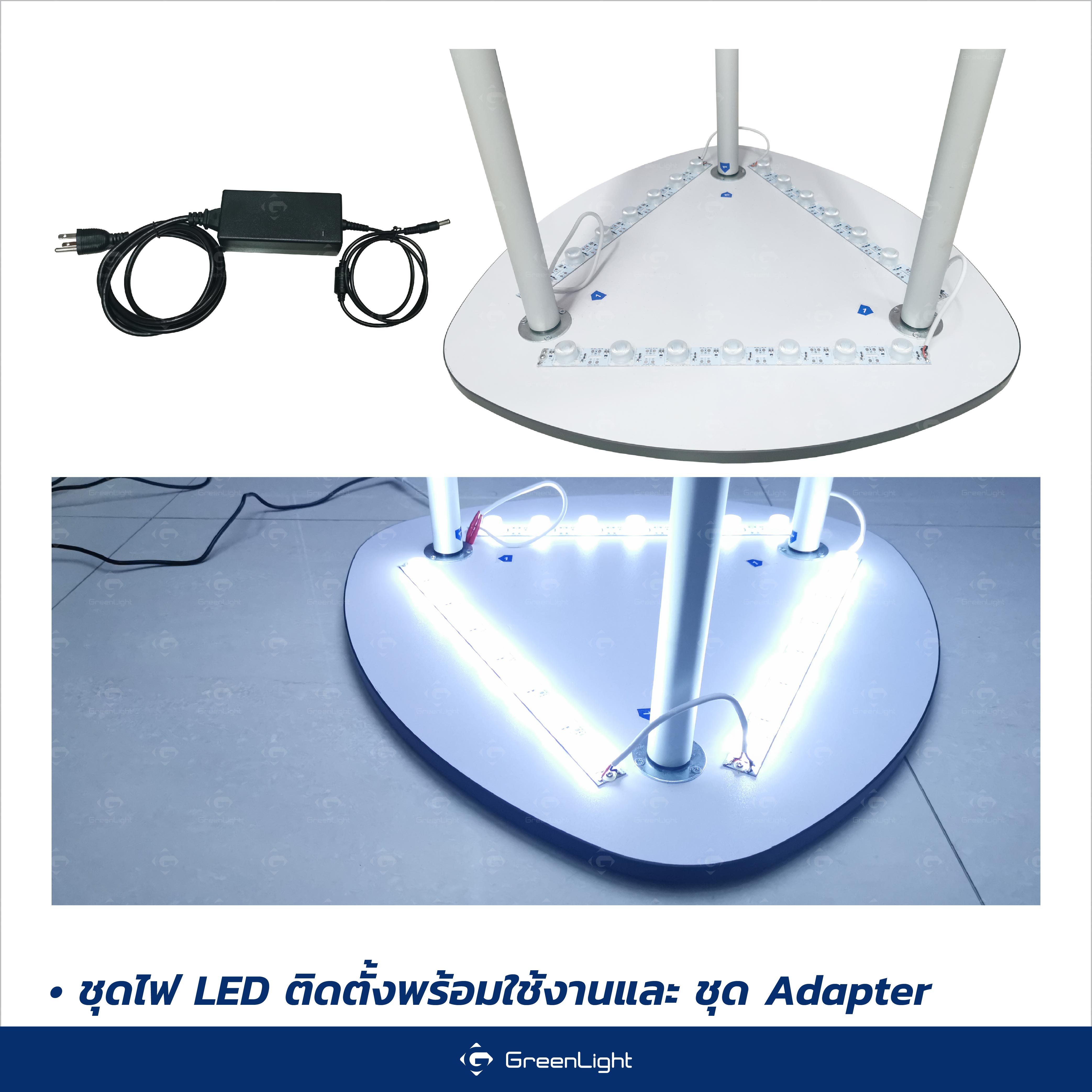 เคาน์เตอร์ผ้า ทรงสามเหลี่ยมพร้อมชุดไฟ LED Fabric Counter FB-5C1 ติดตั้งชุดไฟ LED ที่ด้านล่างของฝาโต๊ะ และชุด Adapter พร้อมใช้งาน