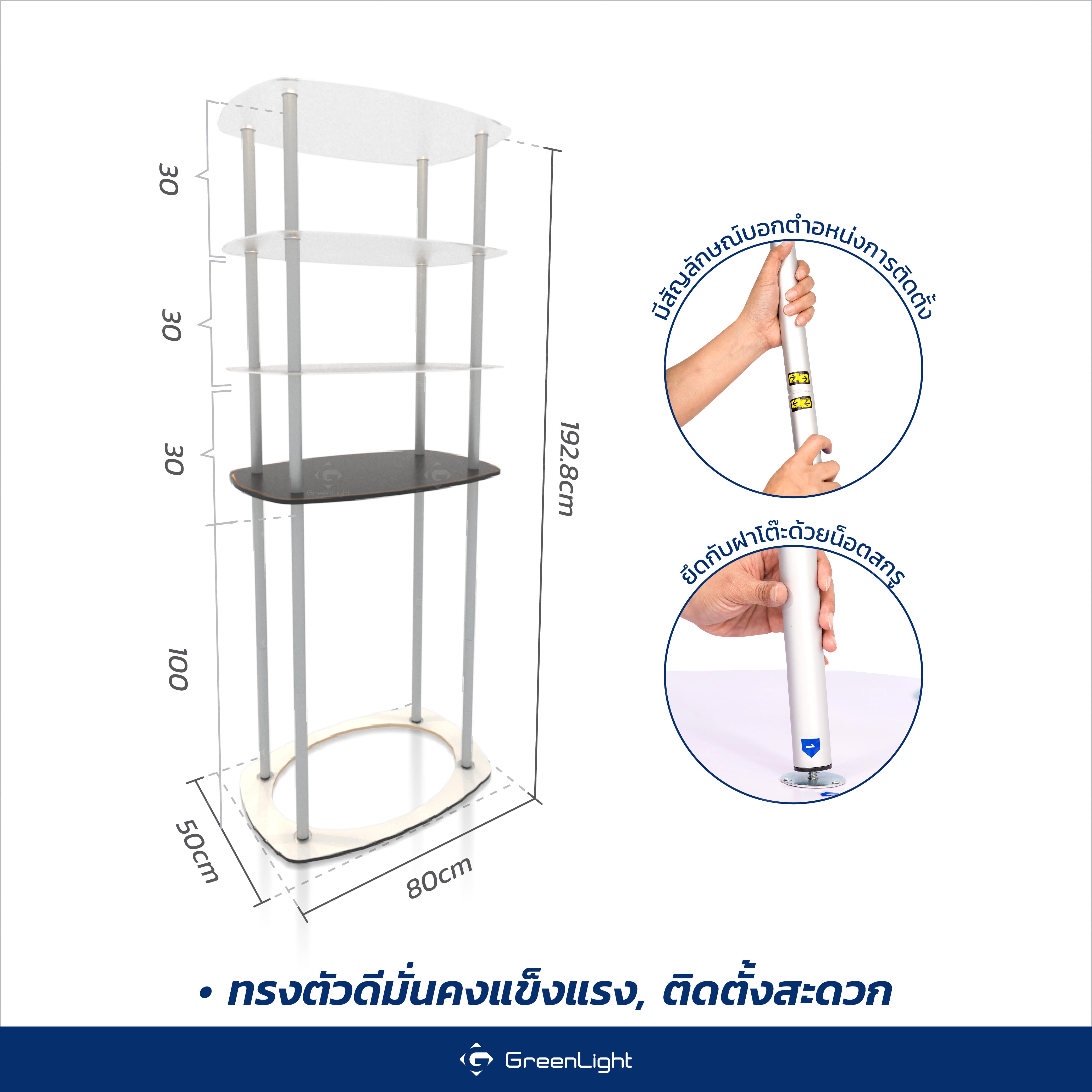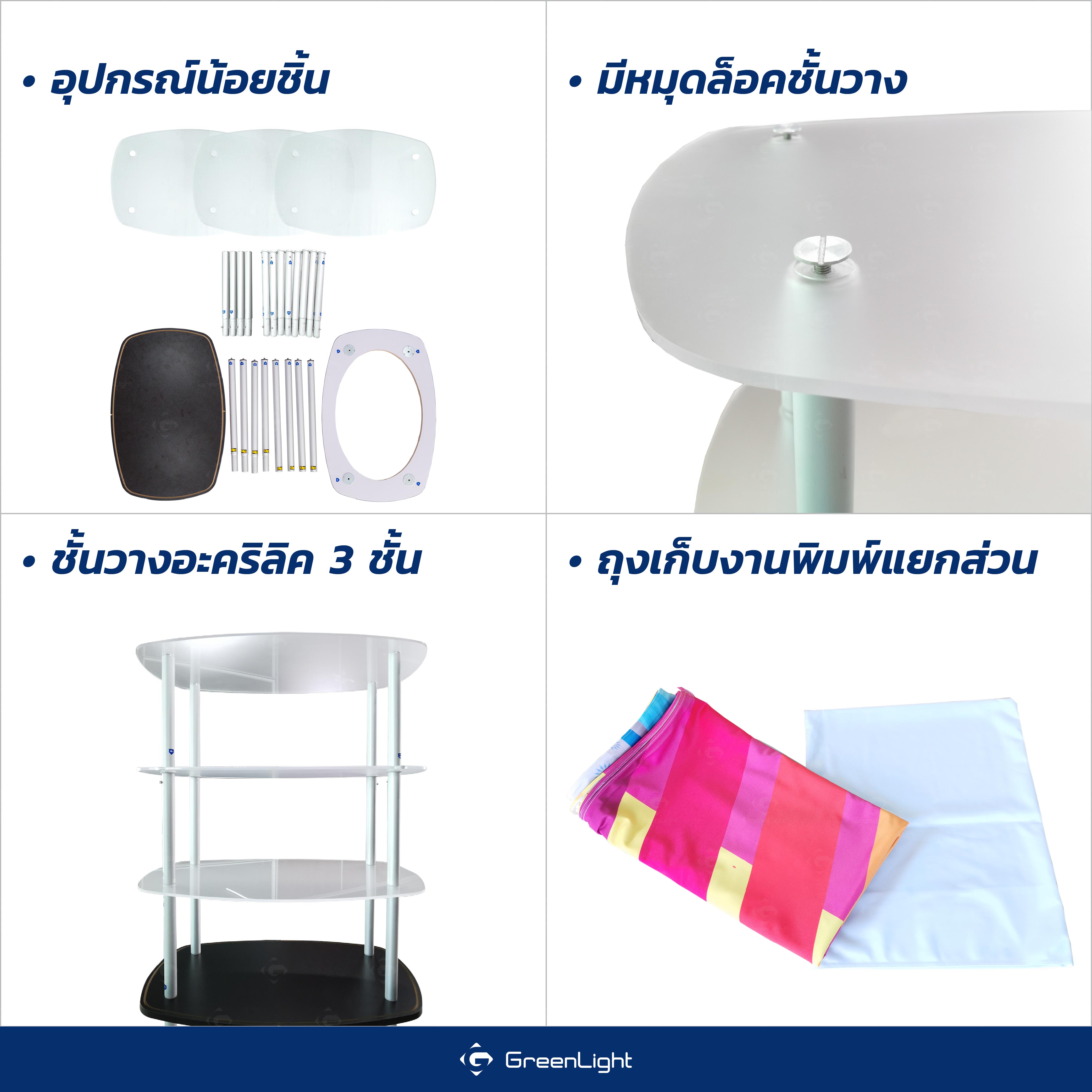 โครงอลูมิเนียม, ฝาโต๊ะ HDF-Board, ชั้นวางอะคริลิค 3 ชั้น