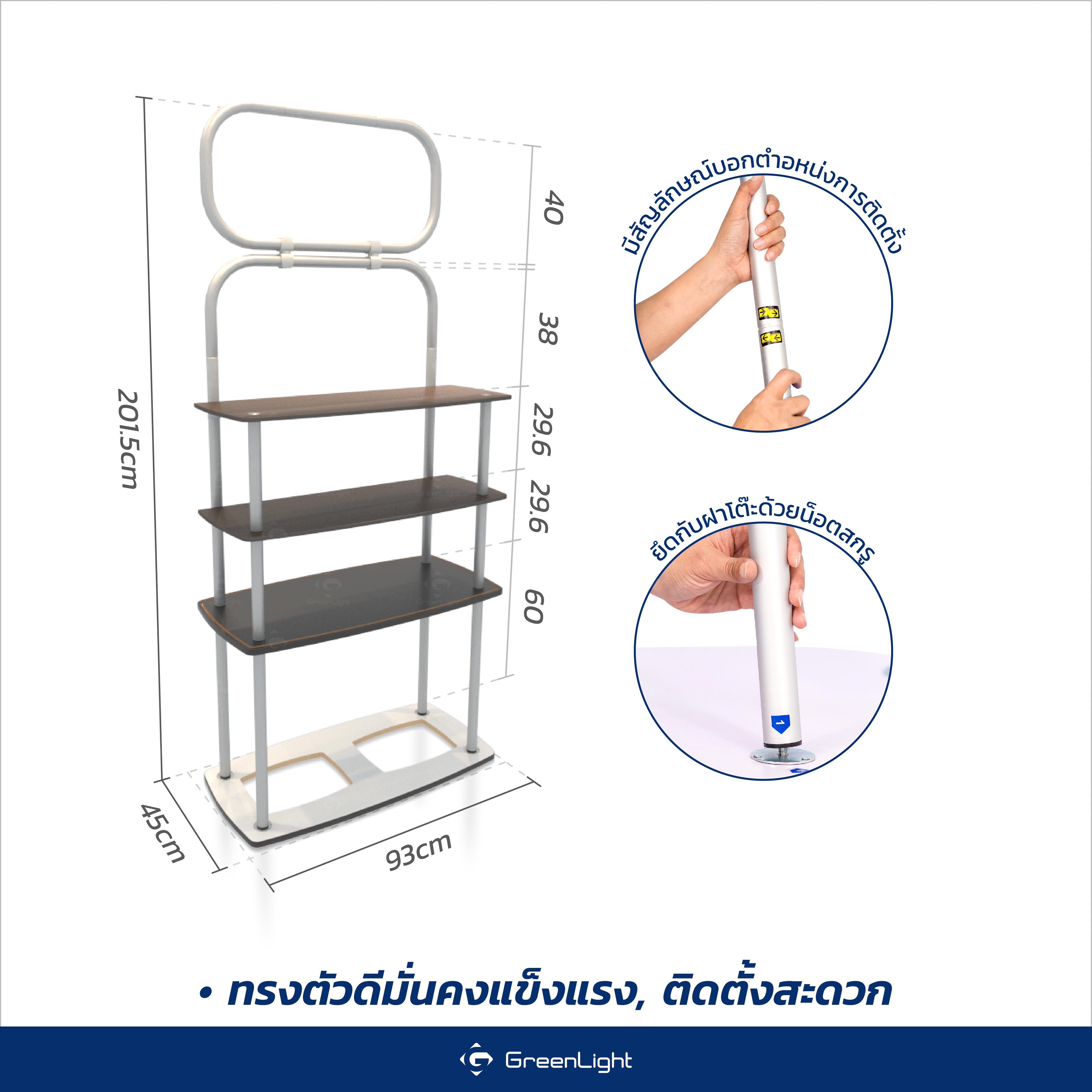 โครงอลูมิเนียม, ฝาโต๊ะ HDF-Board, ชั้นวางไม้ 2 ชั้น