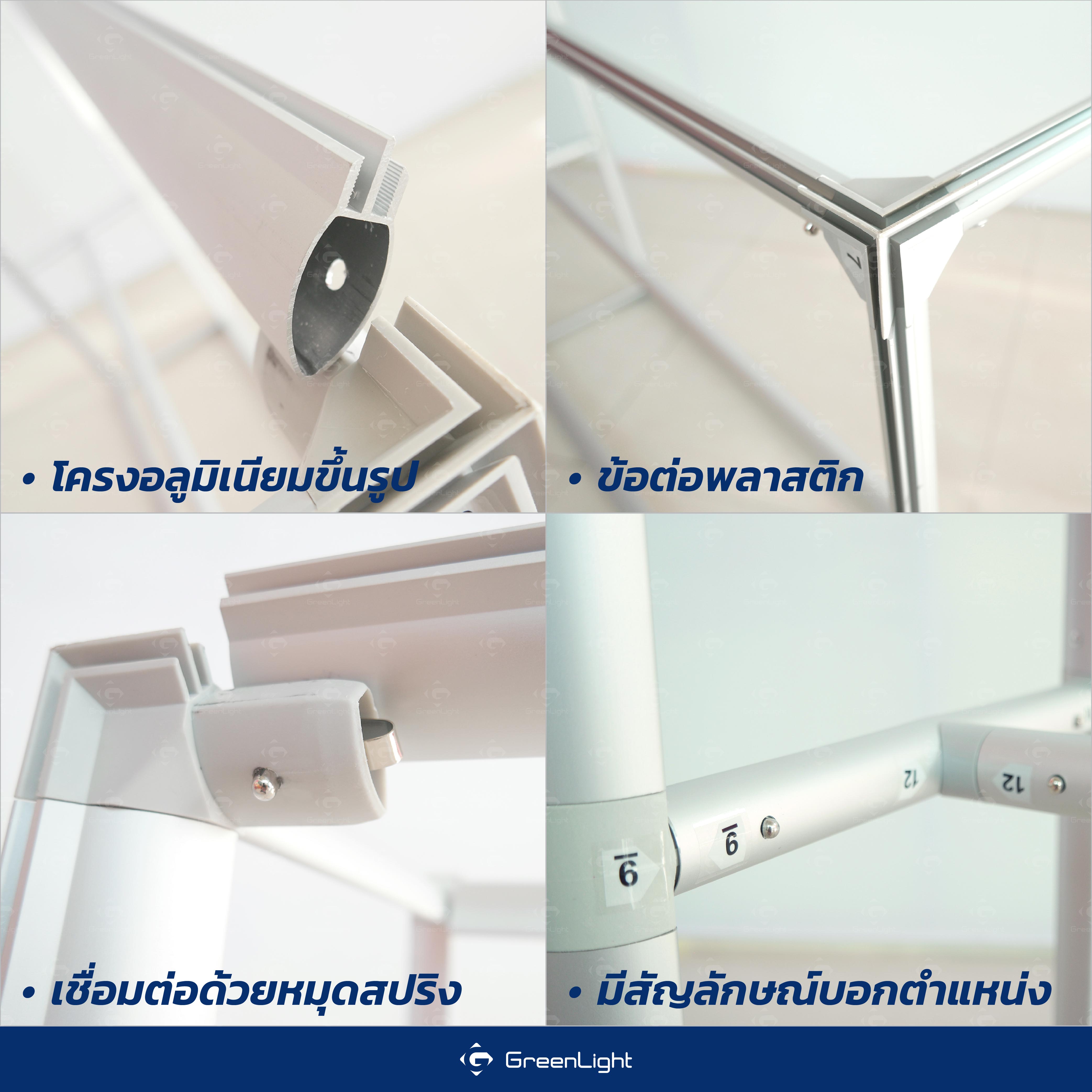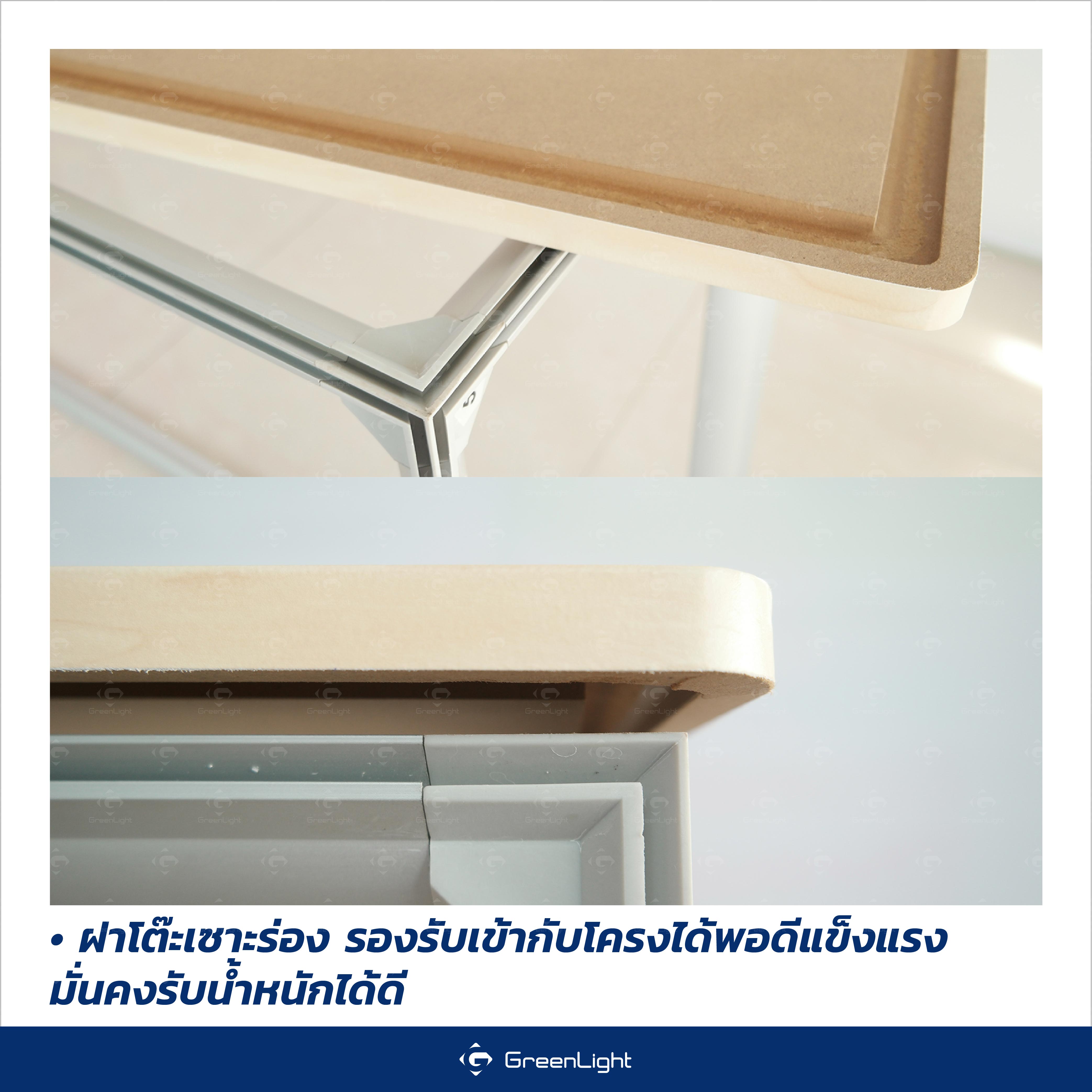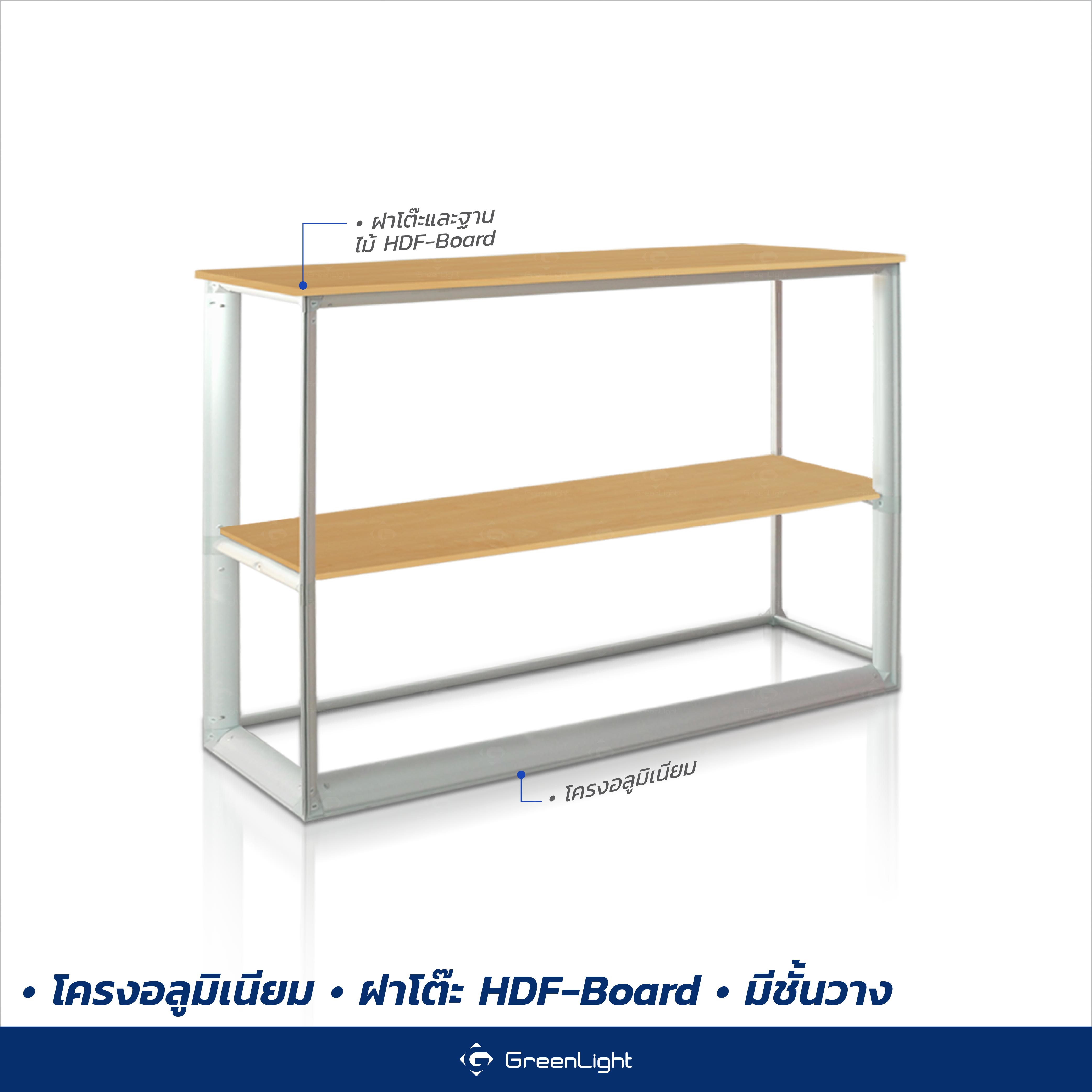โครงอลูมิเนียม SEG, ฝาโต๊ะบน-ล่าง ไม้ HDF-Board, มีชั้นวางของ