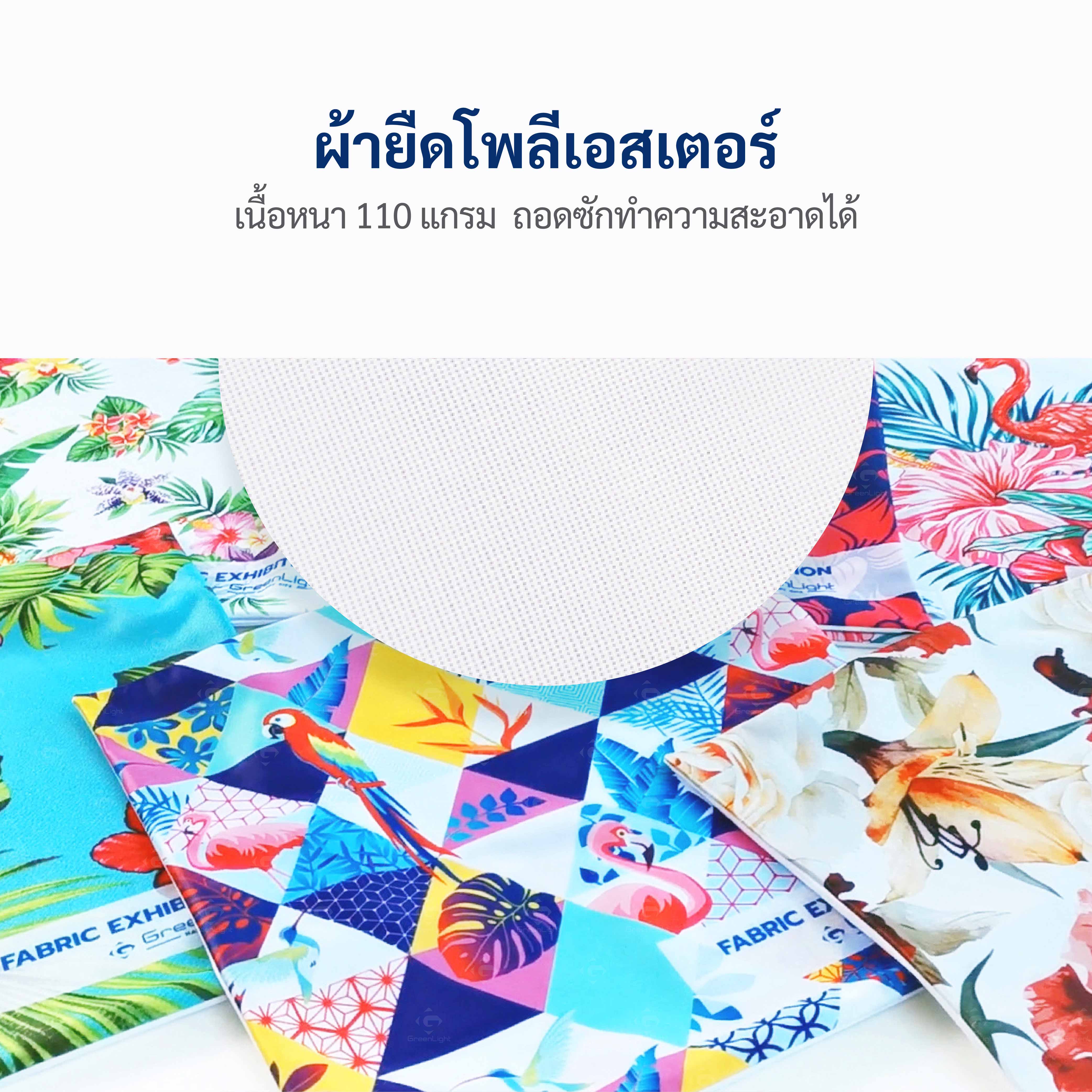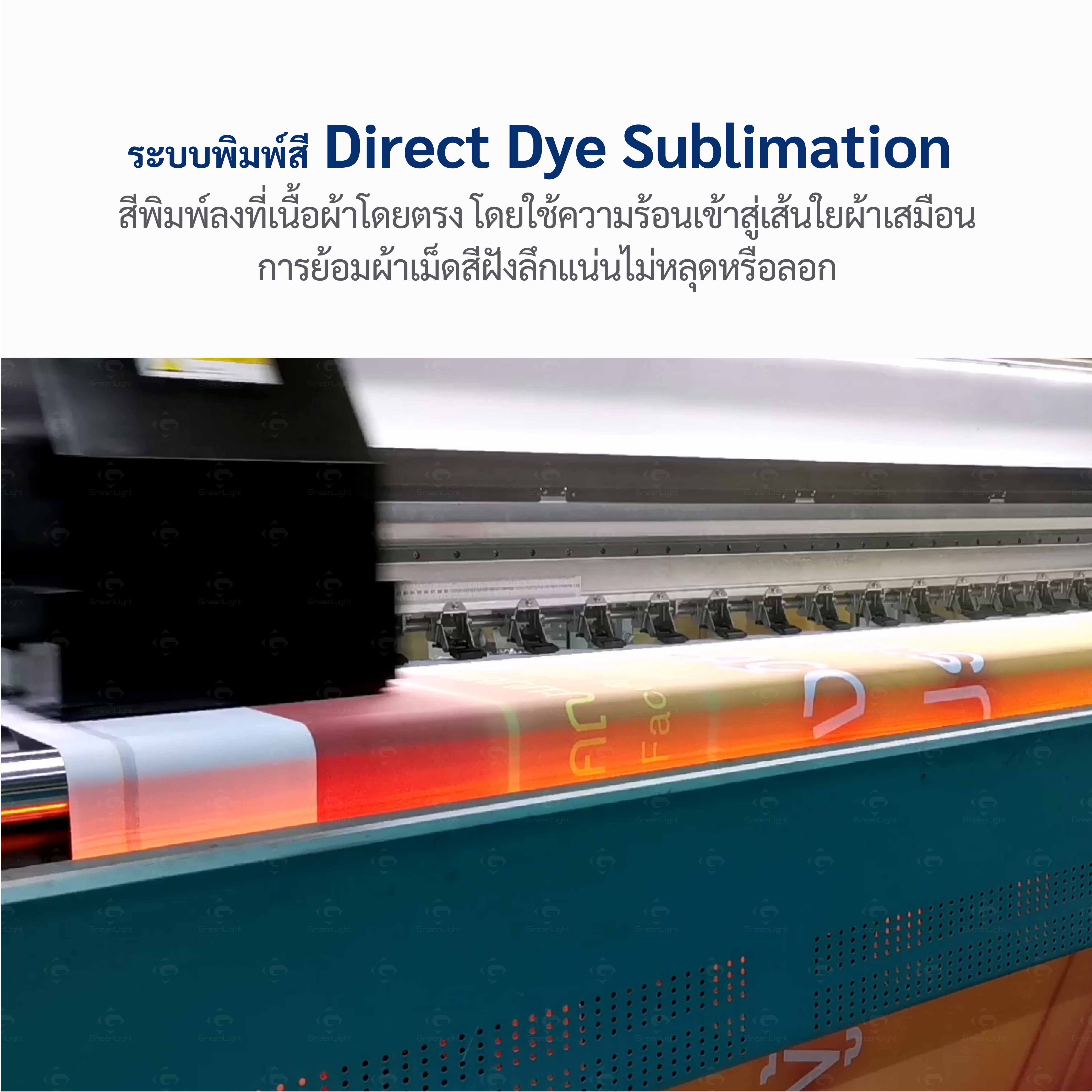 พิมพ์ด้วยระบบ Direct Dye sublimation เนื้อสีลงลึกถึงเส้นใยผ้า ภาพพิมพ์ผ้าสีสดติดแน่น งานพิมพ์ผ้าถอดซักได้ทำความสะอาดได้