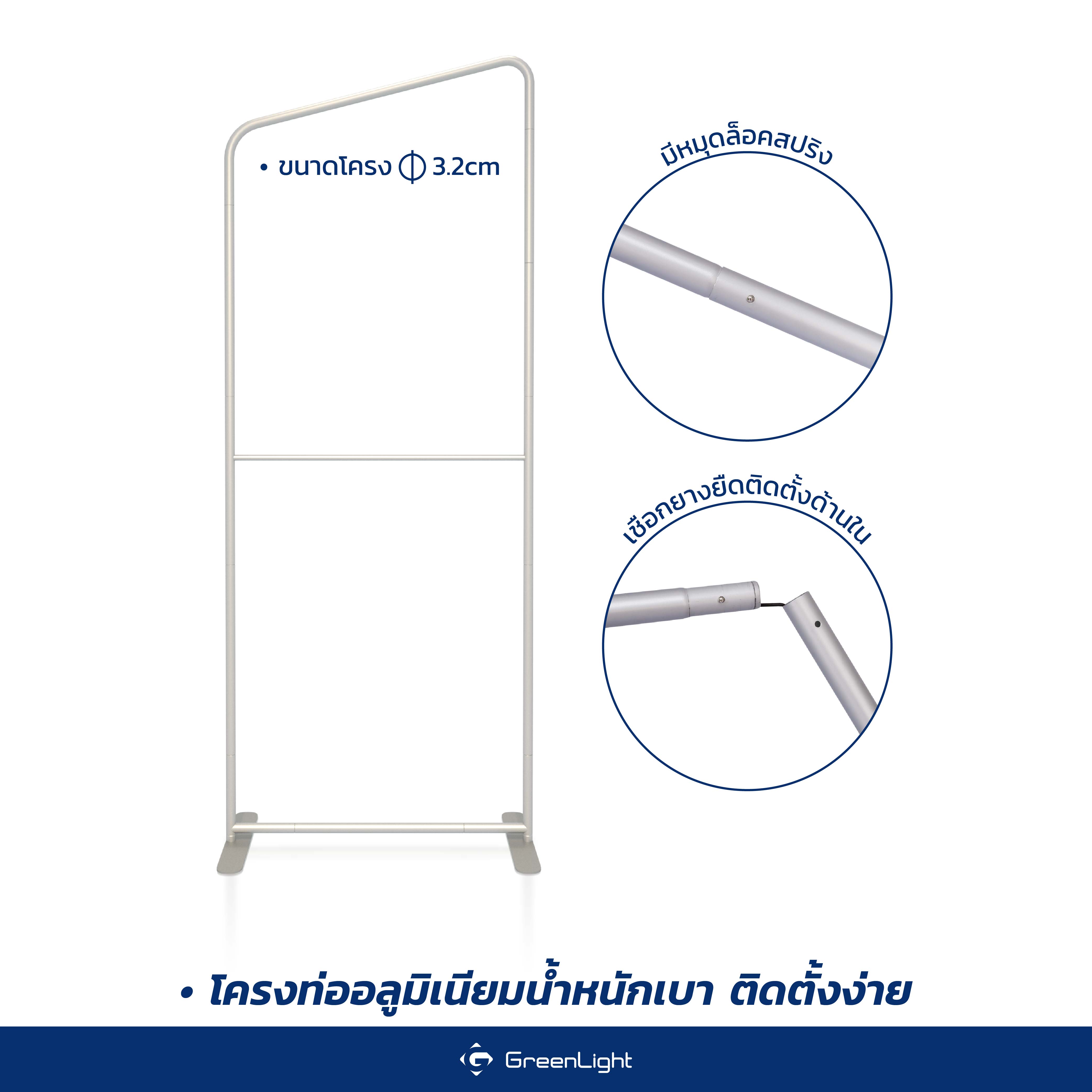 ***ใช้งานเหมือนกับแบคดรอปผ้า (Fabric Backdrop) ต่างกันที่ฐานขาตั้งจะชิดด้านในพอดีกับขอบโครงอลูมิเนียมทั้งด้าน ซ้าย-ขวา