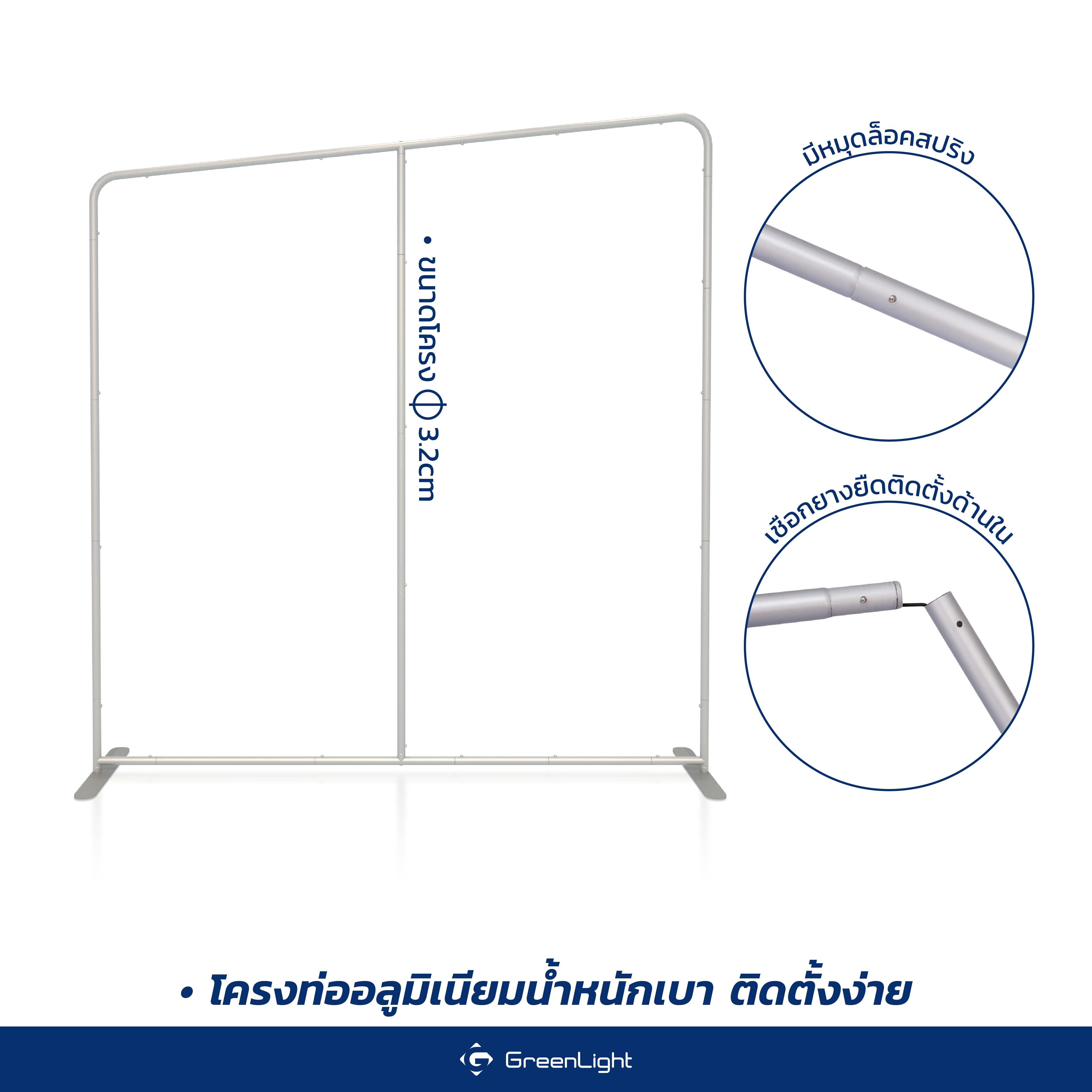 ***ใช้งานเหมือนกับแบคดรอปผ้า (Fabric Backdrop) ต่างกันที่ฐานขาตั้งจะชิดด้านในพอดีกับขอบโครงอลูมิเนียมทั้งด้าน ซ้าย-ขวา