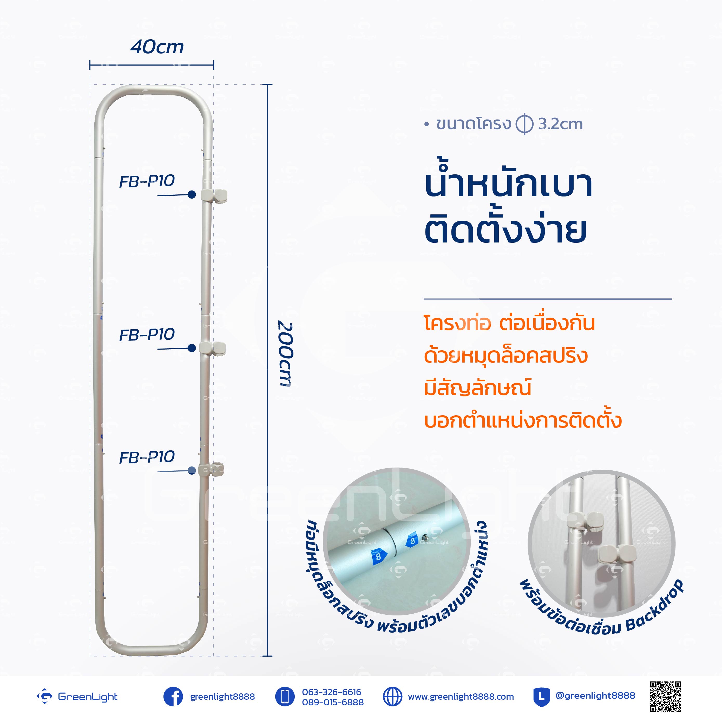 ใช้งานร่วมกับ Fabric Bacedrop FB-10D , FB-10D2 Size : 243.8x228cm ขึ้นไป