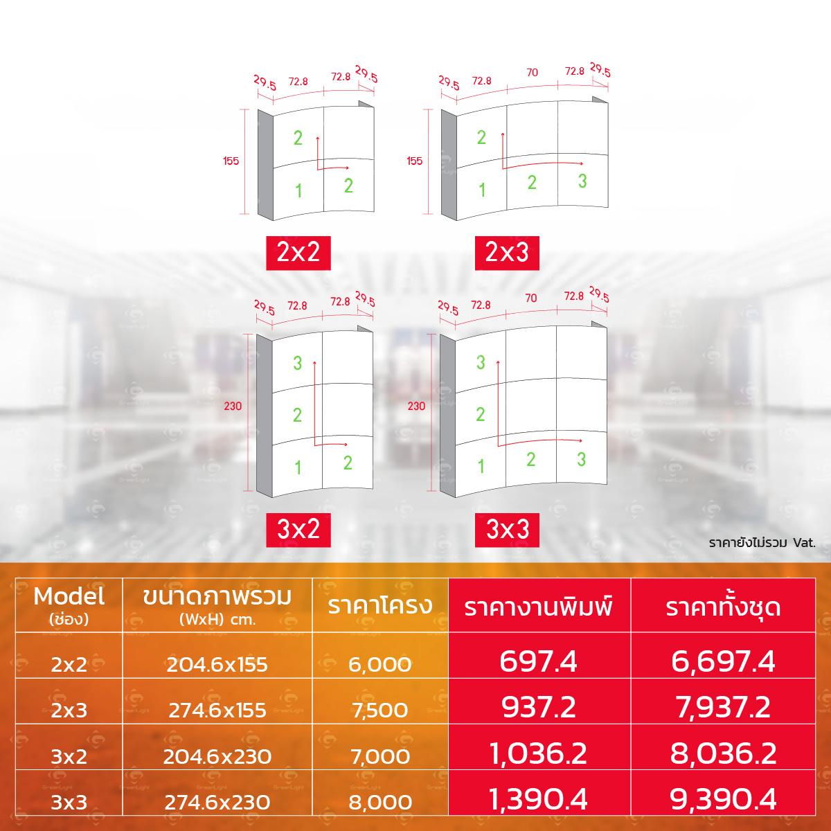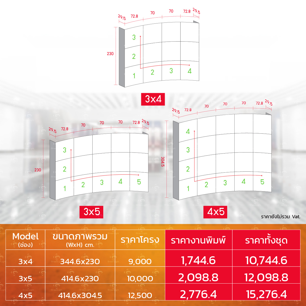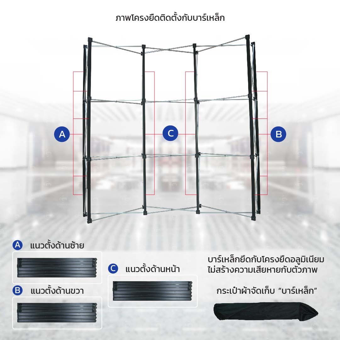 แบคดรอป หน้าโค้ง-ข้างตรง (โครงสี่เหลี่ยม)