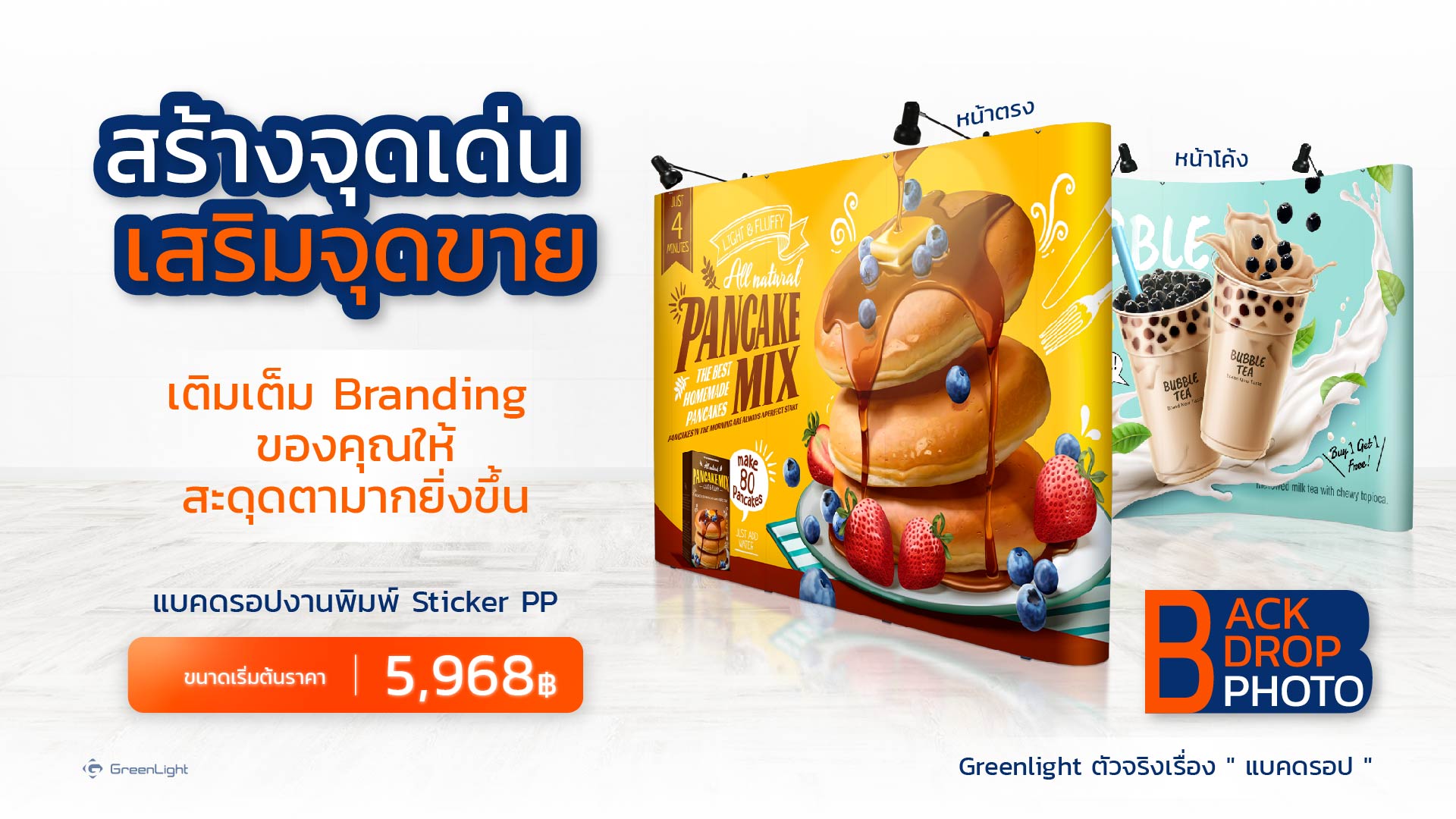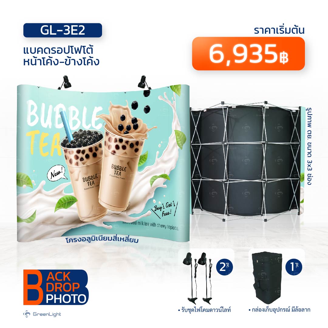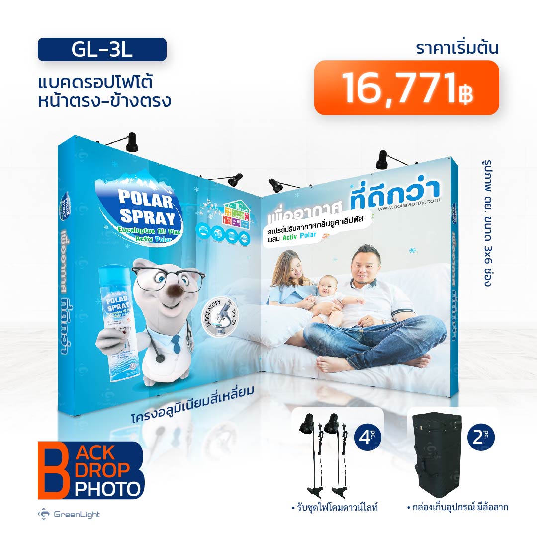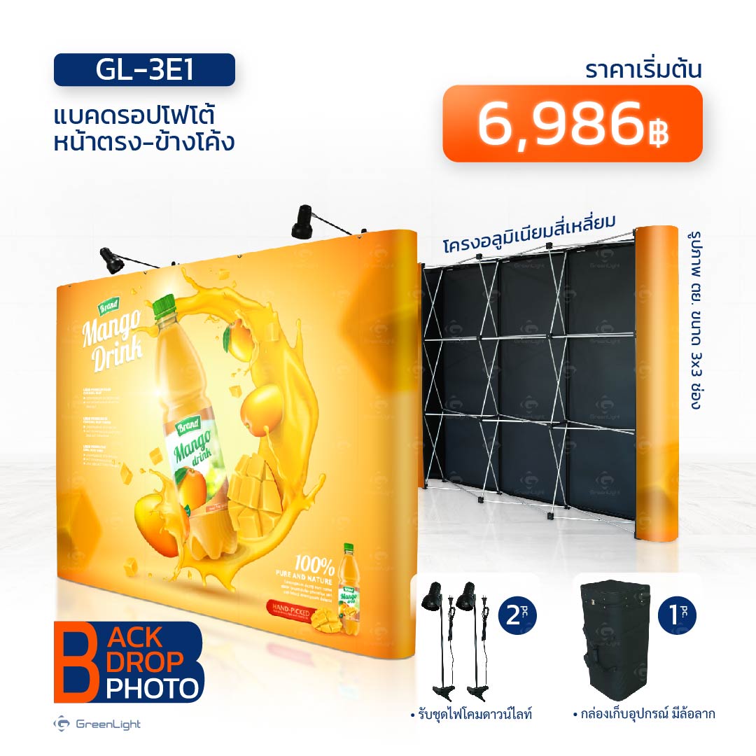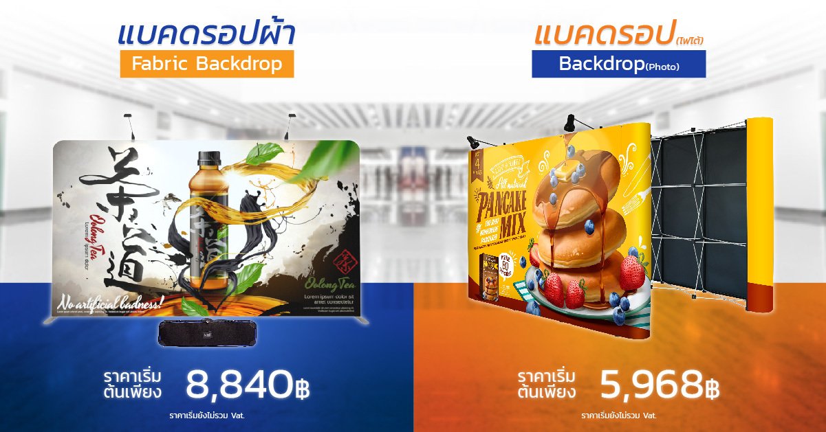 อุปกรณ์ที่นิยมใช้กันมาอย่างยาวนาน ไม่ว่าจะ งานแสดงสินค้า, งานอีเว้นท์, ออกบูธขายของ, งานแสดงคอนเสิร์ต, งานสัมมนา, งานแถลงข่าว ไม่พลาดที่จะมีแบคดรอป เป็น ฉากหลัง ใช้ประโยชน์ได้ หลายหลาย เป็นฉากถ่ายภาพ, เป็นฉากงานแสดง, เป็นป้ายแบนเนอร์ขนาดใหญ่, แม้แต่ทำเป็นป้ายนิทรรศการ ก็ทำได้ดีเช่นกัน มีจุดเด่นที่สำคัญ คือ เมื่อติดตั้งสำเร็จตัวแบคดรอปมีความหนา มีมิติ ดูเป็นทางการ งานพิมพ์แยกเป็นชิ้นๆ เมื่อติดตั้งแนบชิดไร้รอยต่อ