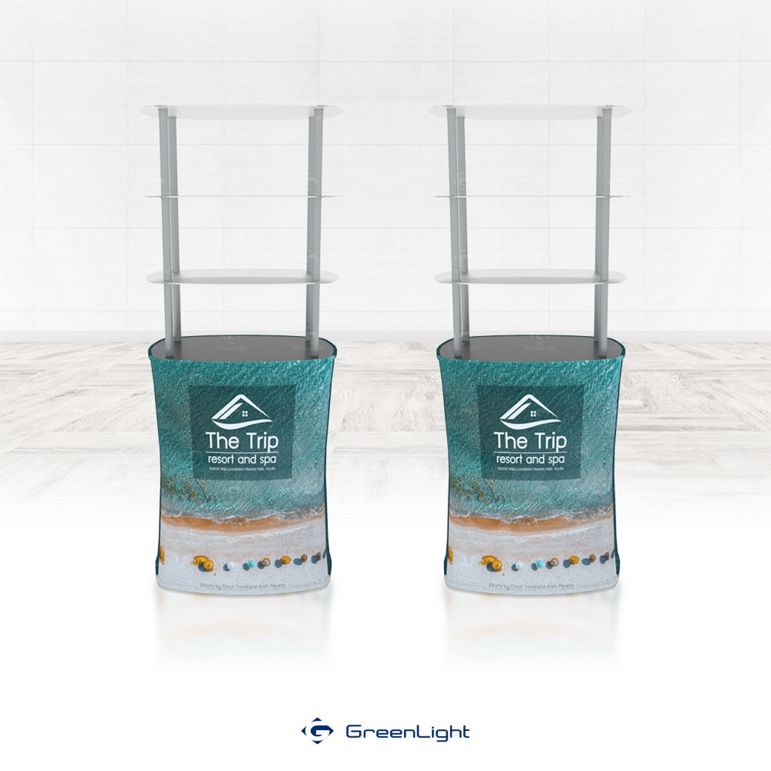*เหมาะใช้กับงานแสดงสินค้า, เคาน์เตอร์ออกบูธ , โต๊ะประชาสัมสัมพันธ์, เคาน์เตอร์เช็คอินสำหรับสำนักงาน ใช้งานเป็นดิยส์เพลย์แบนเนอร์เติมเต็มแบรนด์สินค้าของคุณตกแต่งร้านค้าพื้นที่ขายให้โดดเด่นสะดุดตา